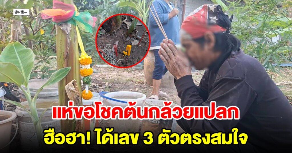 ชาวบ้านแห่ขอโชคลาภบนต้นกล้วยประหลาด พวกเขาได้ตัวเลข 3 ตัวพอดีตามต้องการ