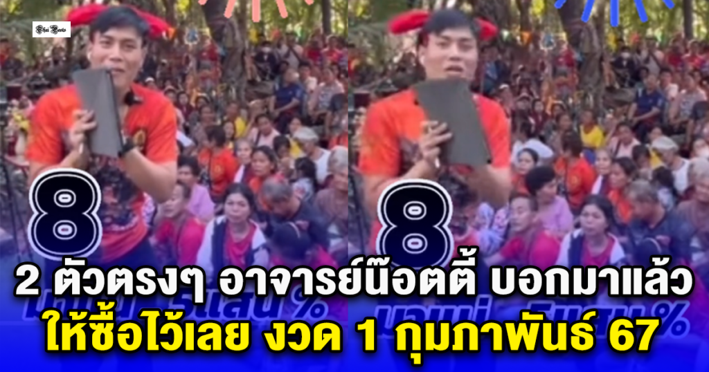 จากเคสที่แล้ว อาจารย์น๊อตตี้บอกเลขว่า ซื้ออะไร ขอ 9 ซึ่งแฟนหวยตรงกับ 779 ทำให้หลายๆ คนเชียร์กันดัง ล่าสุดตามงวดวันที่ 1 กุมภาพันธ์ 2567 อาจารย์น๊อตตี้ก็มาบอกเลขอีกครั้งเช่นเคย ช่วงนี้ก็มีการประกาศอีกครั้งเช่นเดิม ซื้ออะไรก็ได้ แค่มี 8 อัน
